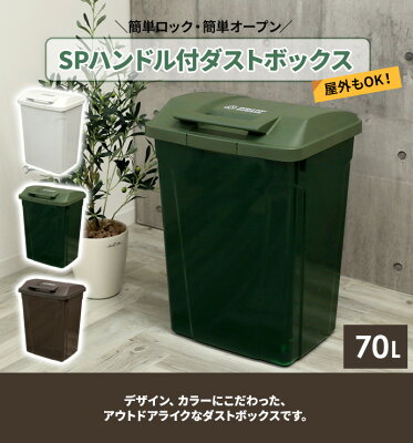 ゴミ箱 屋外 SPハンドル付 ダストボックス 70L | ごみ箱 おしゃれ 大容量 分別 ふた付き ロックつき アウトドアテイスト 外置き グリップ アースカラー