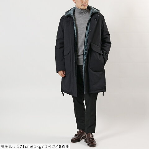 素材 表地1:ナイロン83%、ポリエステル17% 裏地:ナイロン100% 中綿:ポリエステル100% made inCHINA 雰囲気がガラリと変わるリバーシブルでお楽しみいただけるフーデッドダウンコート。