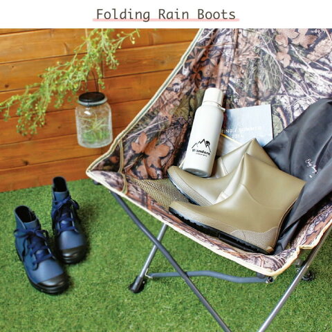 キャンプやフェスでも大活躍!折りたたんで持ち運べるレインブーツ ショートレインブーツはこちら>> ・Spec 商品名 フォールディングレインブーツ サイズ M(約23〜24cm) L(約24〜25cm) 重さ:片足約450g 素材 PVC・ポリエステル 詳しくはこちら