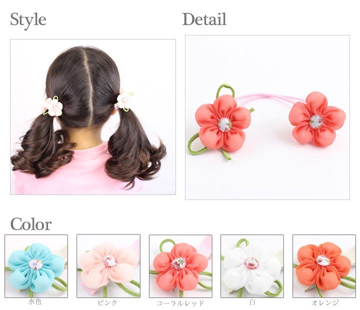 サイズ モチーフ直径:3.2cm ゴム:9cm カラー 水色 ピンク コーラルレッド 白 オレンジ *画面上と実物では多少色具合が異なって見える場合もございます。
